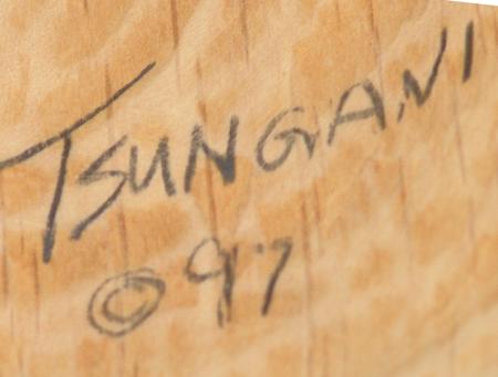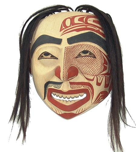 Circa 1997, Outstanding hand carved and painted mask by Tsungani, brother of Chief Lelooska and Patty Fawn. Very good condition, signed. 13" x 11-1/2" From the Johnson Collection.