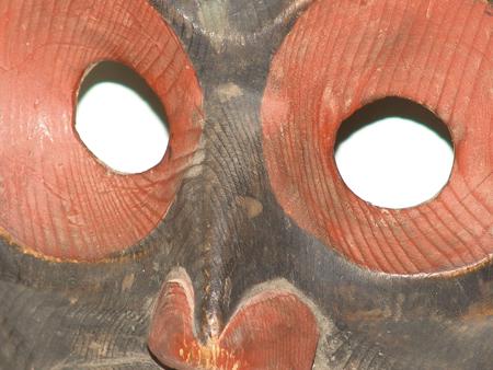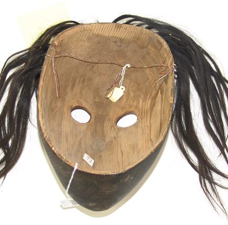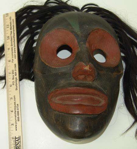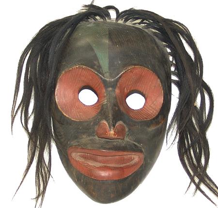 Circa Mid 1900s, Vintage hand carved and painted cedar human face mask. Very good condition, used. 11" x 8" x 5" From the Burks Collection.