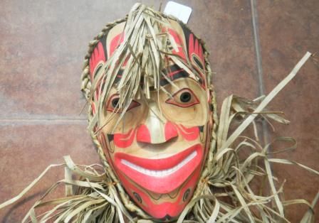 Northwest Coast Mask painted wood with grass trim. Overall mask is 29 inches. Actual face is 10x8 x 3 inches. Condition Very good, Contemporary. Shipping $18.00