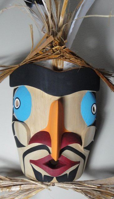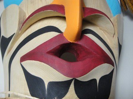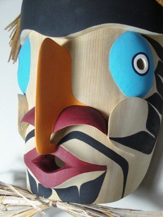 This Unique and Authentic DITIDAHT GROUSE MASK is carved and painted in old growth red cedar, by First Nations artist Russell Tate. Grouse Mask is used in the West Coast Native dance ceremonies...it has deep and detailed carving.... all the fine detailing is done by hand tools. The mask itself(carving only) is 10 " in height ....msrp 2800
