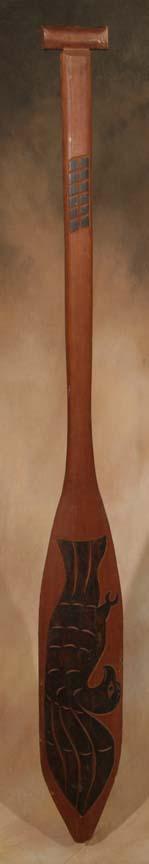 Northwest Coast Paddle. 68" x 8". Hand carved & painted eagle design on both sides. Initials inscribed. Early 20th Century. (est $1,000-2,000). For condition reports please visit: www.auctioninsantafe.com/cr2011.pdf
