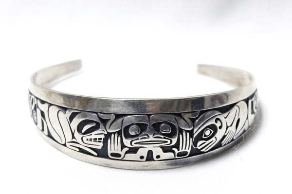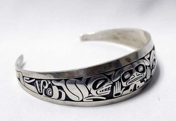 Native American Northwest Coast Sterling Silver Bracelet by Barry Herem, Haida design all sterling silver hallmarked, nice size cuff with an inside measurement of 7.5'' which includes the opening x 7/8''W, fits a large wrist, great for a man or woman, 26.4g in total wt.