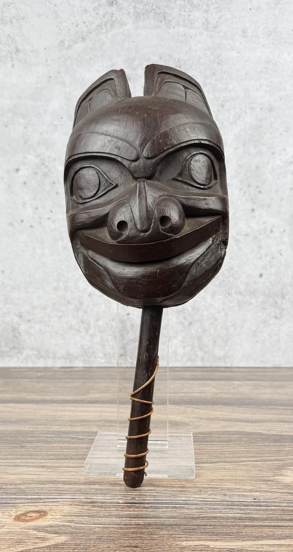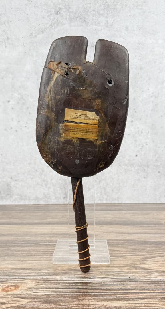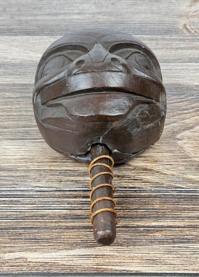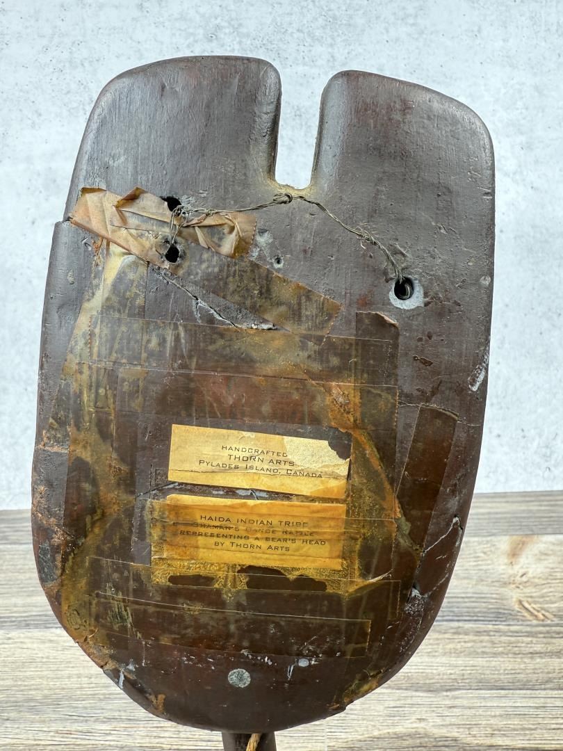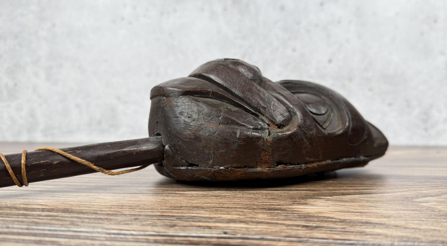 Has been broken and glued back together as shown. 14 1/4" by 5 1/2" by 3 5/8".