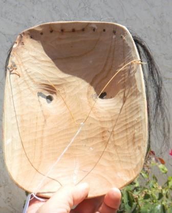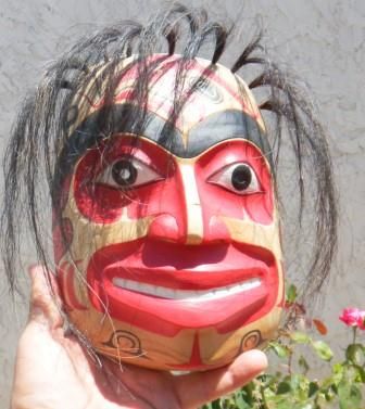 Northwest Coast Painted Wood Mask with Horse Hair. Nine by seven by three inches. 20th century. Fine Condition