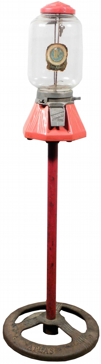 Northwestern 1 Cent Peanut Vendor. Comes on cast iron floor stand. Machine measures 16 inches tall, comes with key.