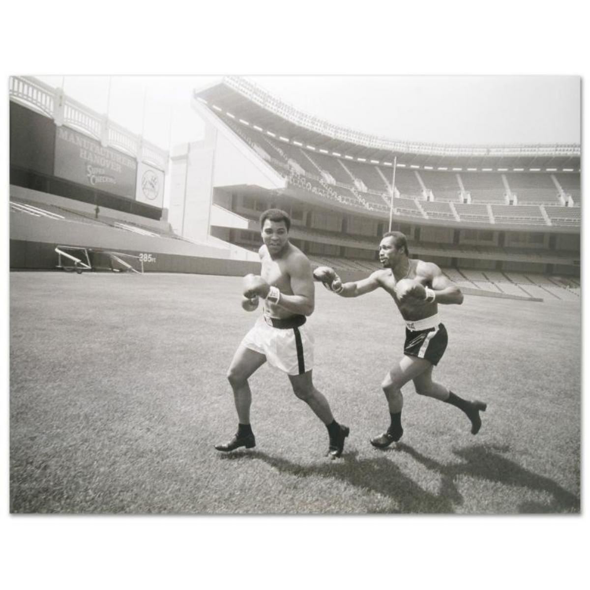 Own a piece of sports history with this photo of Muhammad Ali and Ken Norton (1943-2013), one of Ali's famed opponents. Taken at the peak of Ali's success as one of the greatest heavyweight championship boxers of all time, this photo is sure to complement any sports memorabilia collection. This is a licensed photograph on paper. Measures approx. 40" x 30" (no border).