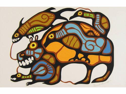 [Canadian RCA b. 1931] BEAR SPIRIT Colour serigraph on paper; Ed. #299/500 12.5 x 19.5 ins. Signed & titled
