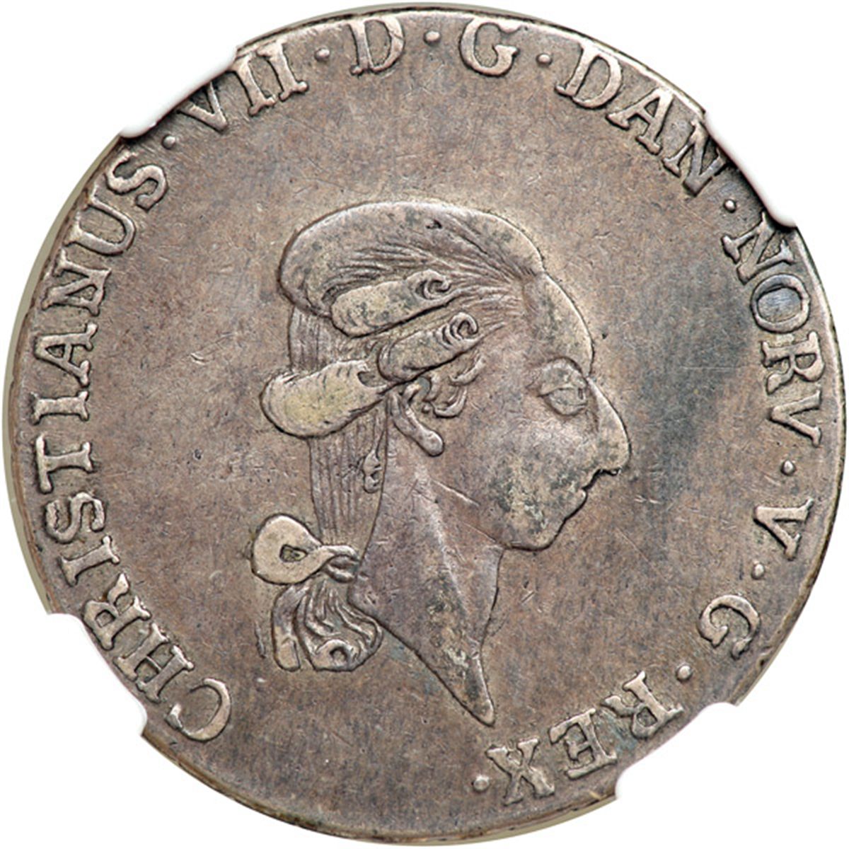 Norway. 1/3 Specie Daler, 1796-HIAB. Ahl-22a; KM-266. Christian VII. Head right. Attractively toned. NGC graded EF-40.