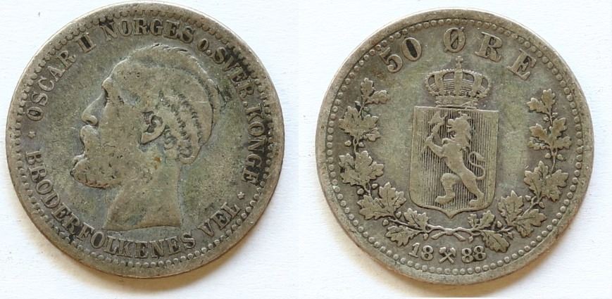 Norway; 1888 50 Ore, KM356 Fine. Scarce.