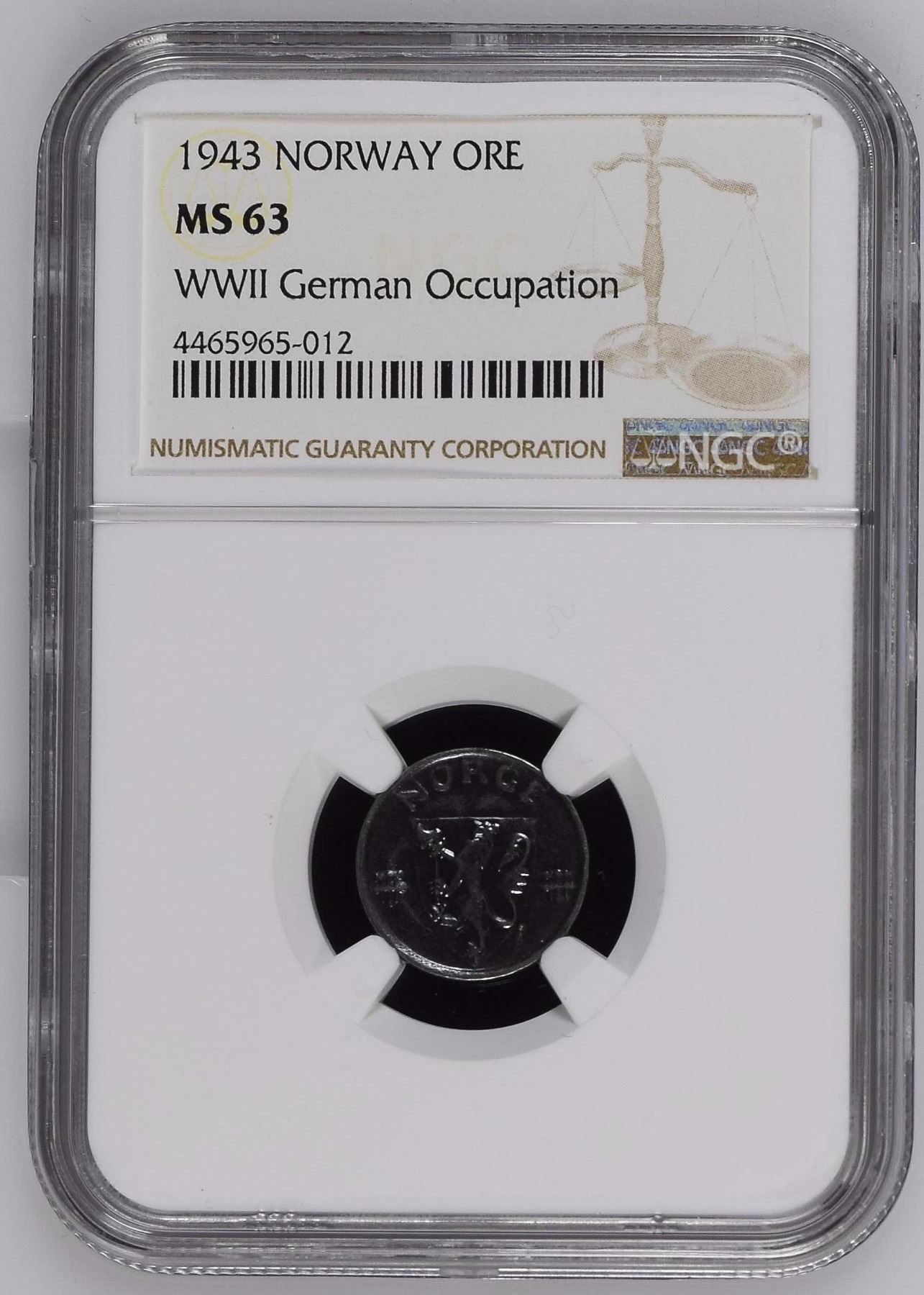 Norway 1943 Ore WWII German Occupation NGC MS63 *ONLY 3 GRADED*