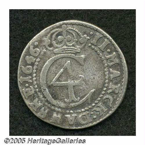 <B>Christian IV 2 Mark 1646, </B></I>KM28, Ahlstrom 115, F-VF, lightly porous surface, Christiania Mint, popular type with "Jehovah" in Hebrew on the reverse.