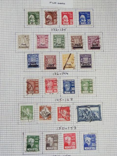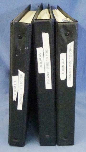 very nice collection of nearly all postally used stamps and souvenir sheets in (3)homemade albums with Denmark from 1885-2004, Finland 1885-1997 and Norway 1919-1997. Many complete sets. Nice scattered earlies with values to $50+ spotted. Well worth revie