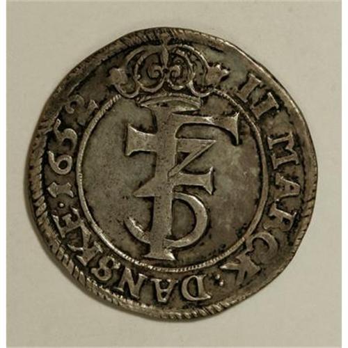 <B>Frederik III 2 Marck 1652,</B></I> KM33, toned VF+, nice bold strike.<BR><BR><b>Shipping:</b> Coins & Currency (<a target="_blank" href="http://www.heritageauctions.com/common/shipping.php">view shipping information</a>)