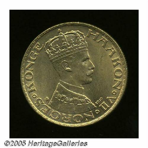 Norway. Haakon VII gold 20 Kroner 1910, KM376, UNC, lightly Haakon VII gold 20 Kroner 1910,