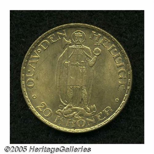 <B>Haakon VII gold 20 Kroner 1910, </B></I>KM376, UNC, lightly toned, minor contact marks.