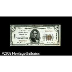 <B>Norway, MI</B></I> - $5 1929 Ty. 1 <B>The First NB</B></I> Ch. # 6863<BR><B>Crisp Uncirculated.</B></I> Gem paper surfaces and embossing, but the left face margin is a bit too small for a higher grade and there is an area of light aging at lower right. The nicest of the three examples from here we offer tonight. Lot:16899