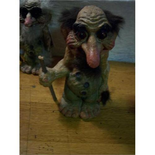 Large NyForm Norwegian Troll Doll.These are hand made in Norway.Very expensive in the store.So homely they are cute.This one measures 10" tall.I have added a little more info on these dolls.A Mr. Torgerson and his wife Evelyn started the company in 1964.One of the artists is Bjorn Schulze.They are all made by hand from natural materials.They are a Norwegian folk lore doll.There is also a NyForm Troll Collectors Club-Brodrene Flaaronning A/S-7095 Ler,Norway-Their e-mail address is -www.flaaronning.no/troll -if you would like more info.