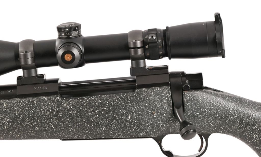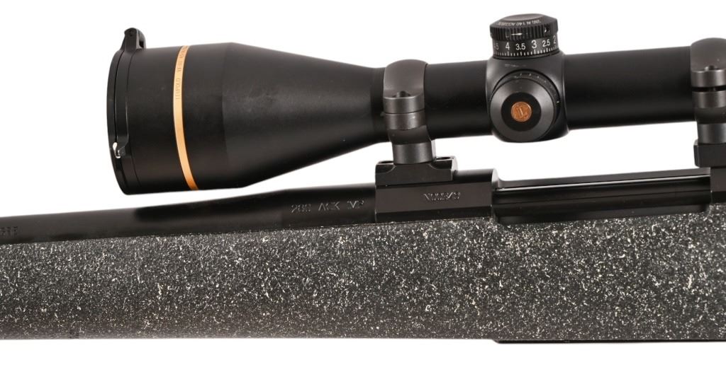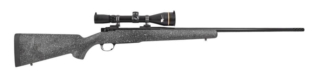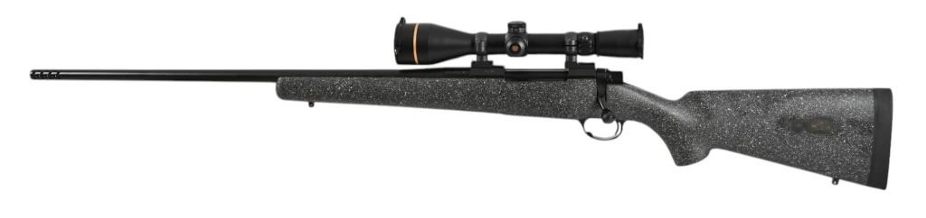 S/N N00349. Left-handed bolt action, chambered in 280 Ackley Improved. Leupold VX-III 4.5-14x50mm scope, custom 26.5" barrel engraved "Forrest Montealegre", Composite stock. Excellent condition rifle. Modern