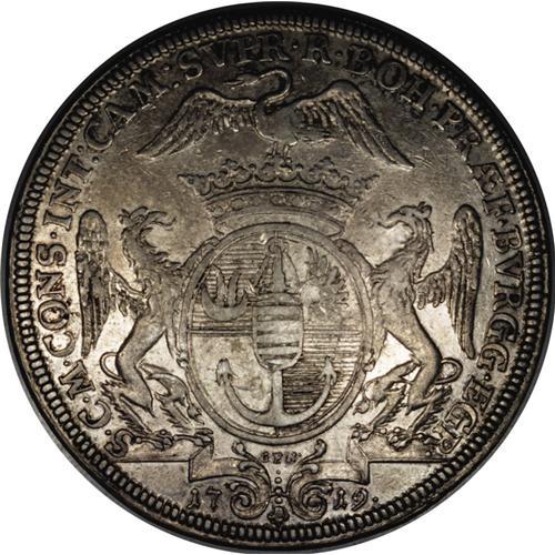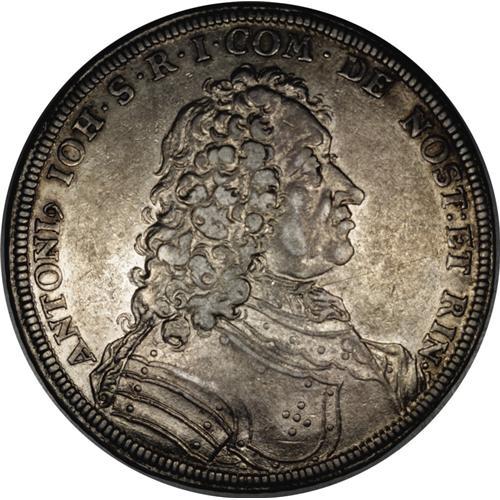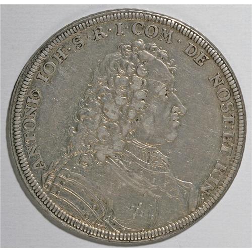 <B>Nostitz-Rieneck. Anton Johann Taler 1719-GFN, </B></I>KM6, Davenport 1191, nearly XF, lightly toned with some original mint luster. A handsome example of this very rare type. The Nostitz family was originally from Bohemia and purchased Rieneck in 1673.<BR><I>From the Blue Ridge Collection</B></I><BR><BR><b>Shipping:</b> Coin/Currency (<a target="_blank" href="http://www.heritageauctions.com/common/shipping.php">view shipping information</a>)