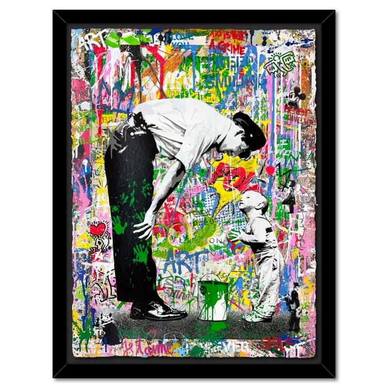 "Not Guilty" is a mixed media original on deckle edge paper by Mr. Brainwash, hand signed and bearing the thumbprint of the artist inverso. This piece comes custom framed. Includes Certificate of Authenticity. Measures approx. 26" x 34" (frame), 22" x 30"