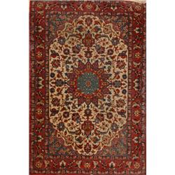 Not Illustrated, Keshan Rug, Post 1950, Beige ground with palmette and trellising vine fiel...