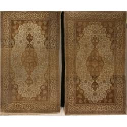 Not Illustrated, Pair of Keshan Rugs, Circa 1950, Each beige ground with palmette and trell...