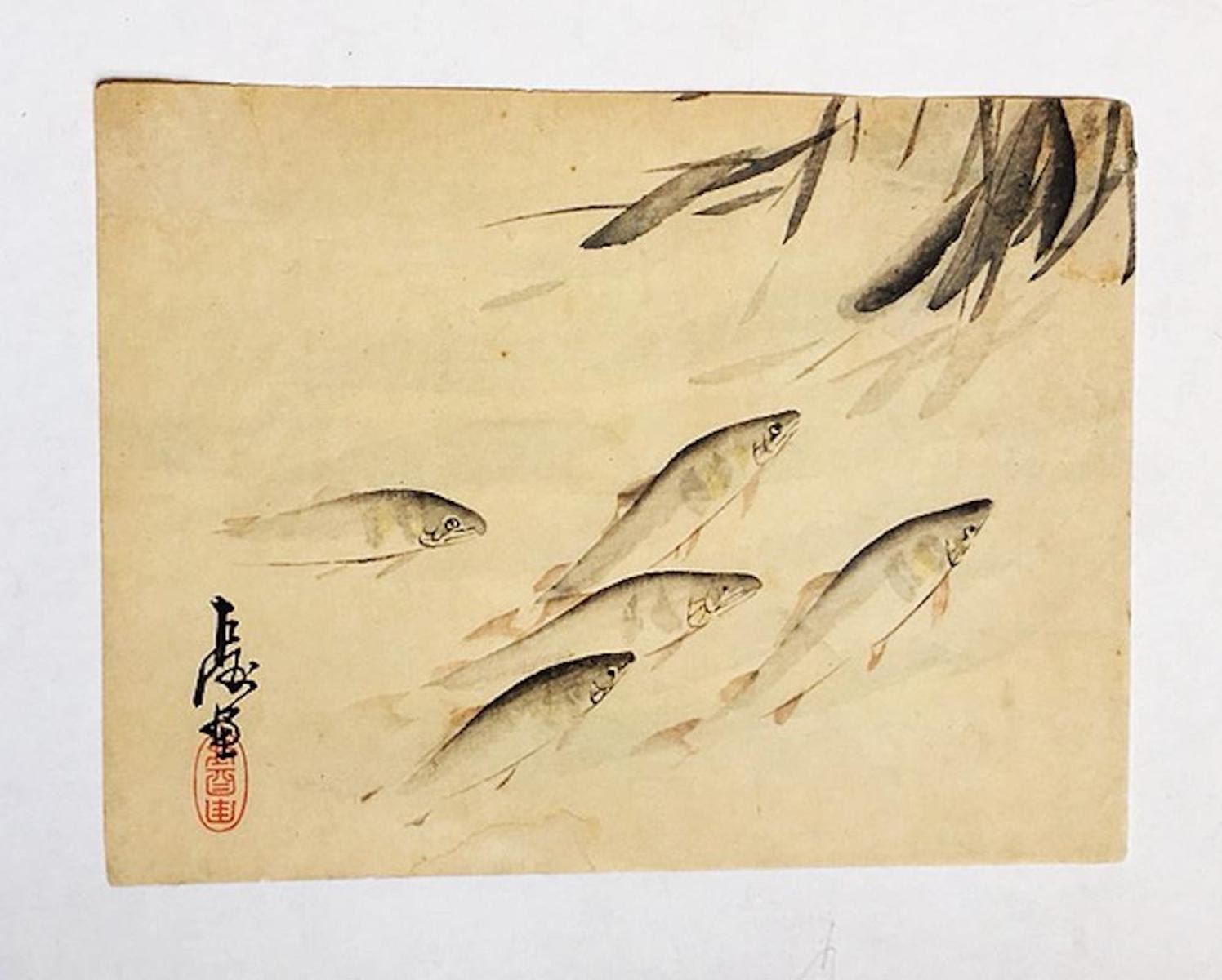 Not Legible- "Fish Swiming"?. Approximate measurement at 10 x 7.5 inches. FINE CONDITION