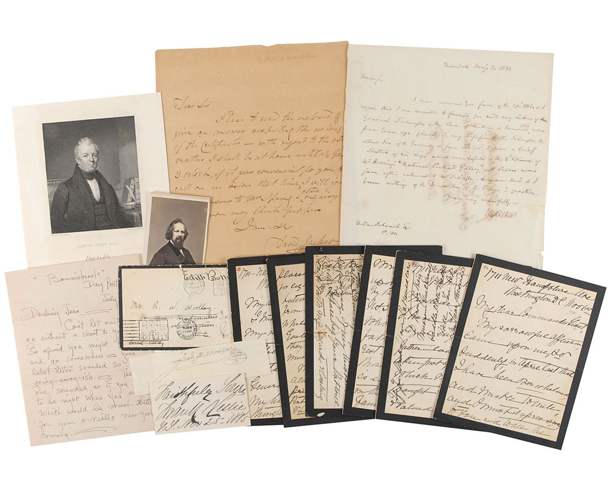 Collection of eight items from various notables consisting of ALSs, signatures and a free frank.
