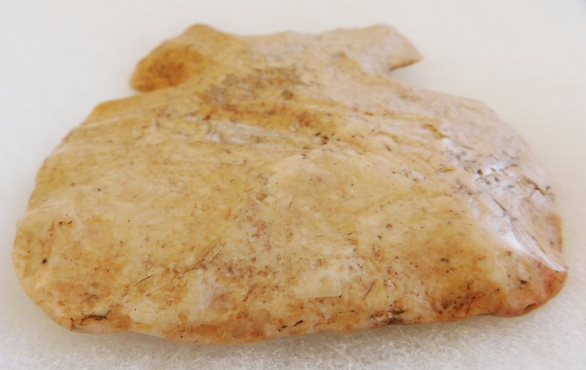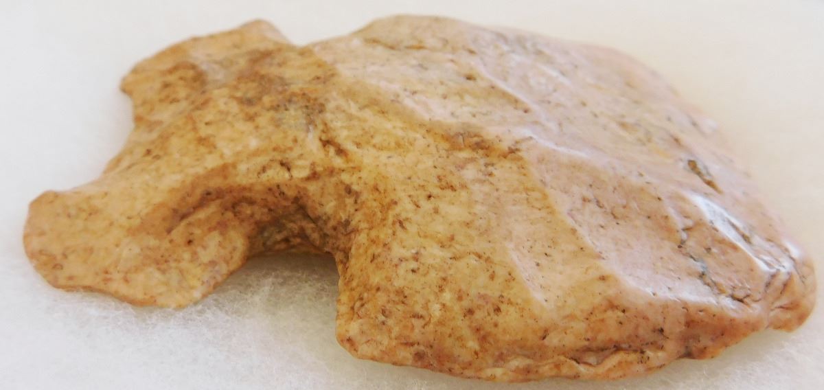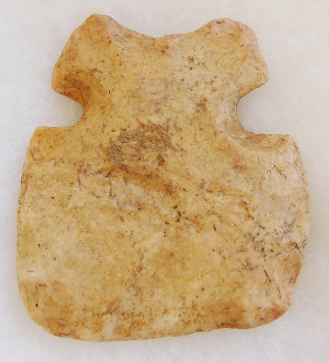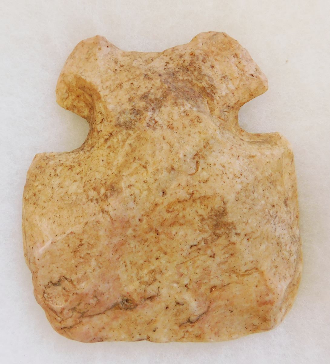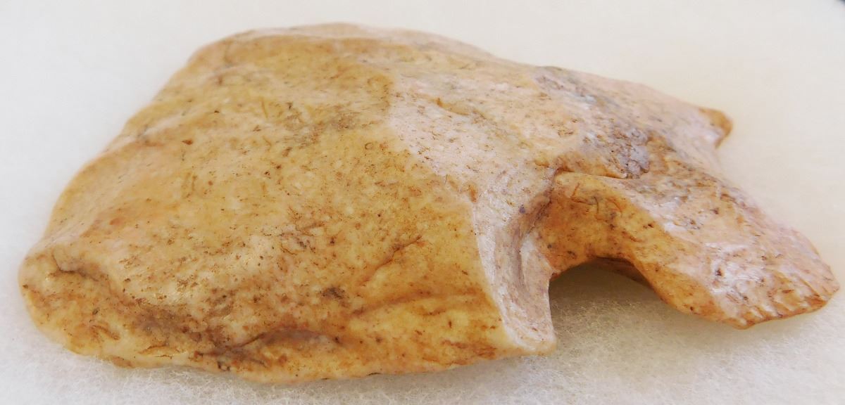 Notched Flint Axe, pre-historic item. Made of chert, this item measures 4.25" x 4" x 1". From Illinois. Rare Item. Frame not included. Condition: Severe wear and polish, see images. Shipping: $20.00.