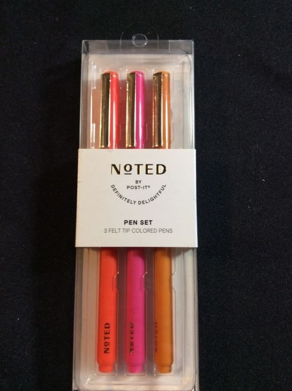 Noted by posted three felt tip colored pens