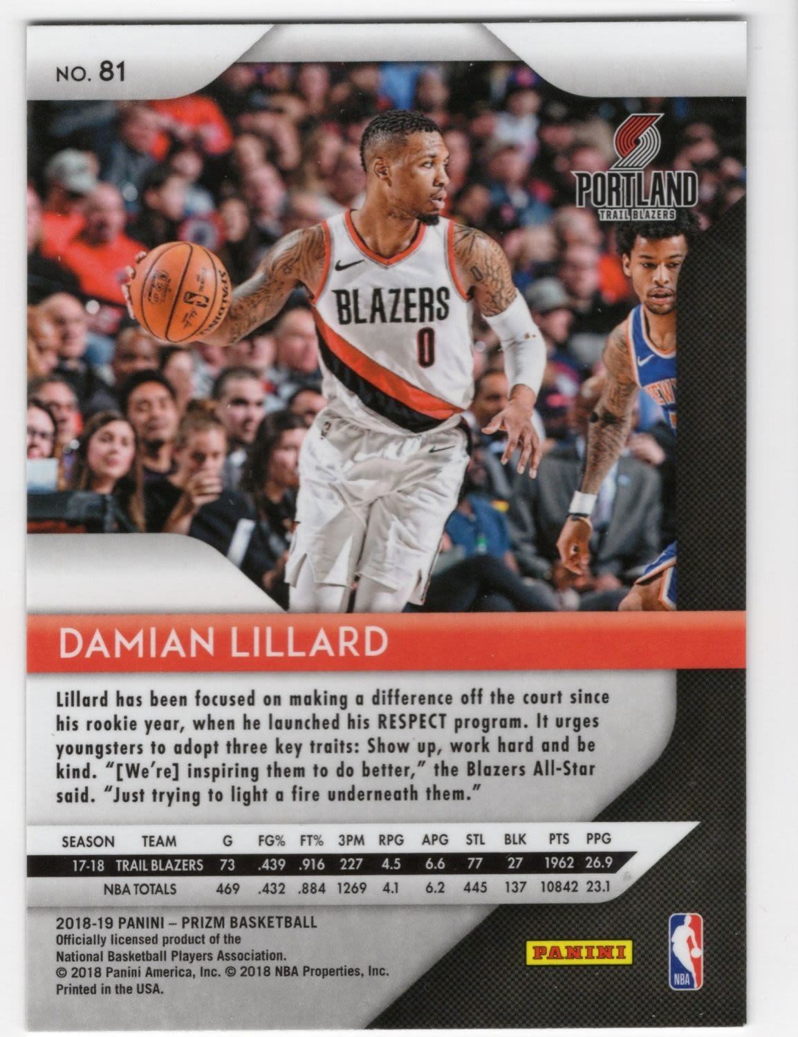 2019 Panini Prizm Damian Lillard No. 81