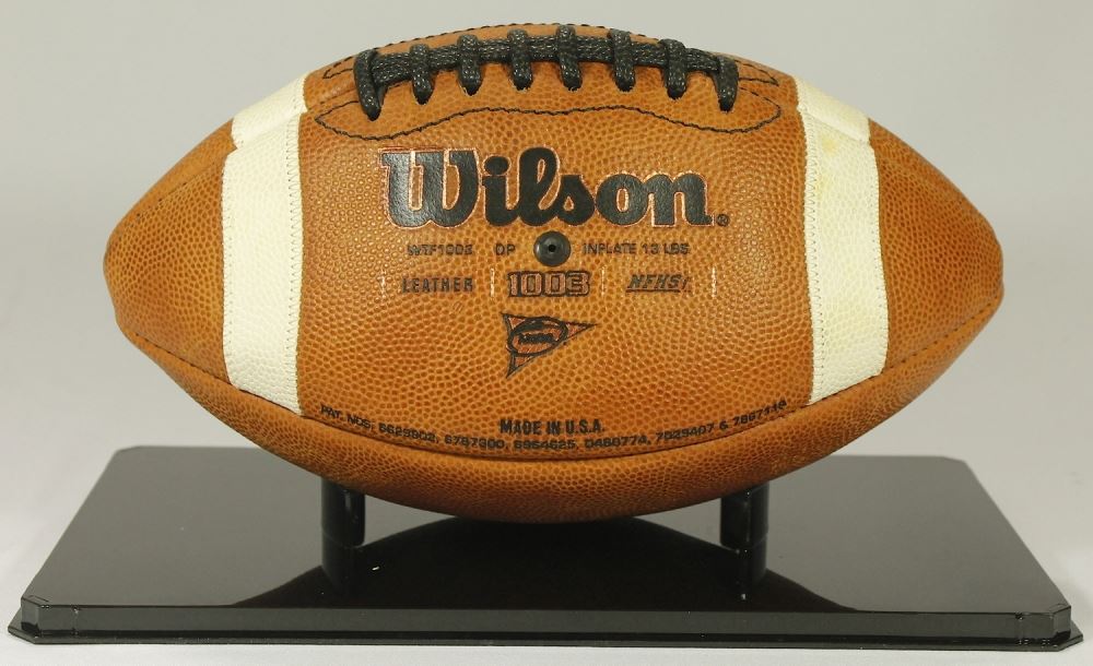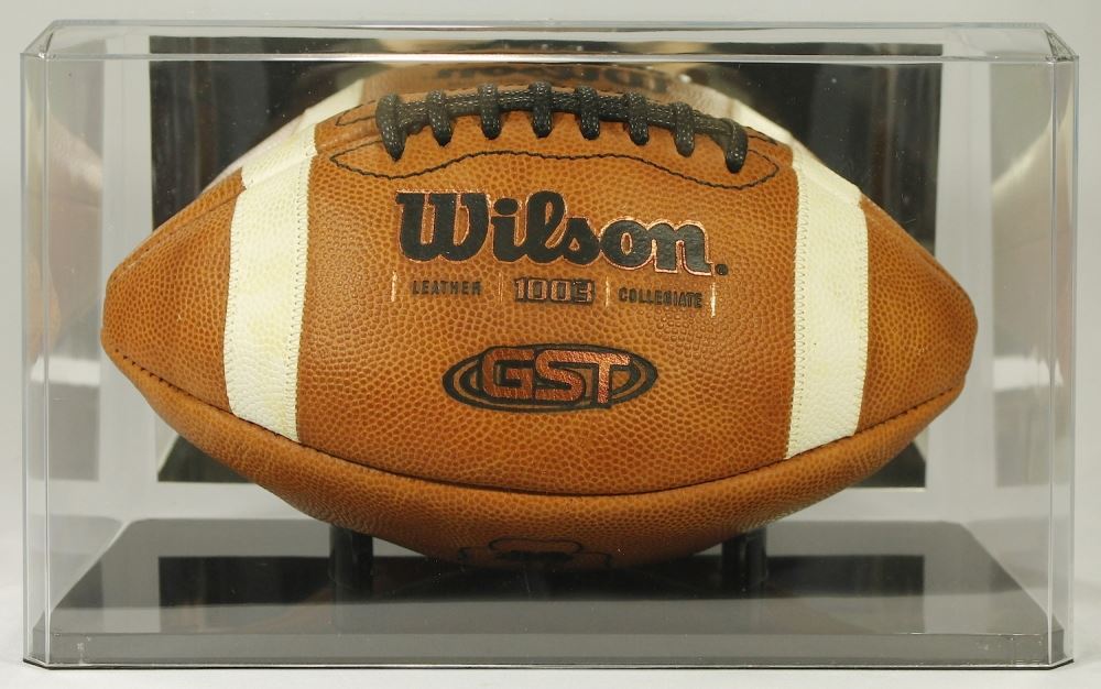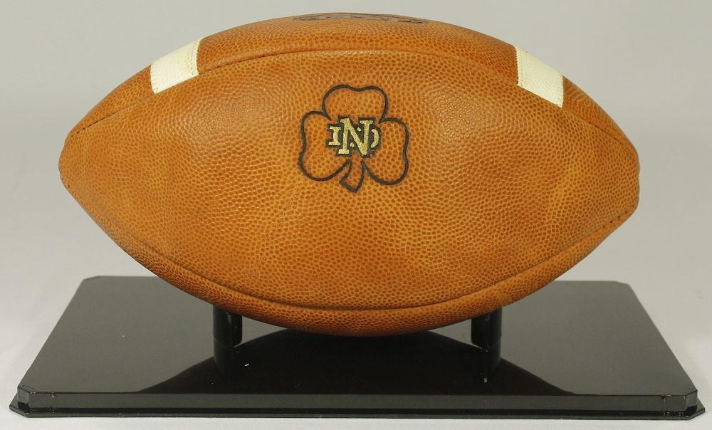 Notre Dame Official Collegiate Game Issued Football. Please note that the football is not signed and leaks air. The football includes the display case shown.