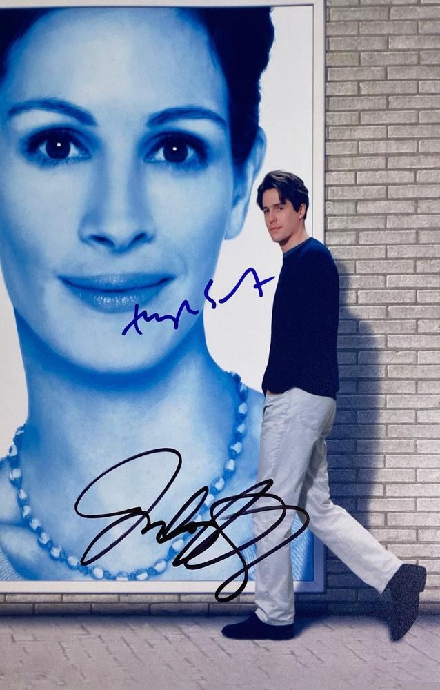 Notting Hill Julia Roberts and Hugh Grant facsimile signed movie photo. 8x10 inches. This item is a reprint of an original autograph