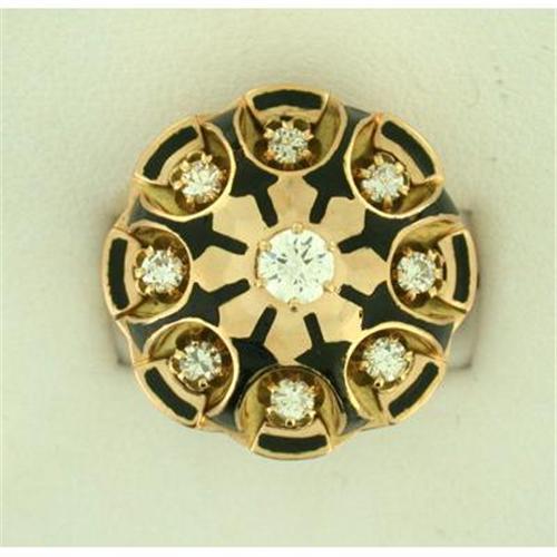 in a band of 14k yellow gold accented with enamel.