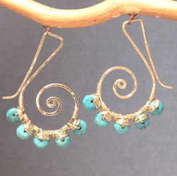Metal: Silver Swirl shapes wrapped with turquoise, about 1-3/4" Available in either 14K gold-filled, rose gold-filled, or sterling silver. All jewelry is entirely handmade in our studio in New York.