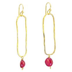 Metal: RoseGoldHammered long ovals with pink ruby, about 2" long.Available in either 14K gold-filled, rose gold-filled, or sterling silver. All jewelry is entirely handmade in our studio in New York.