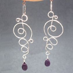 Metal: GoldHammered swirl shapes with your choice of stone (amethyst shown), about 2-1/4"Available in either 14K gold-filled, rose gold-filled, or sterling silver. All jewelry is entirely handmade in our studio in New York.