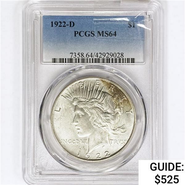 1922-D Silver Peace Dollar PCGS MS648013e - 1922-D Silver Peace Dollar PCGS MS64