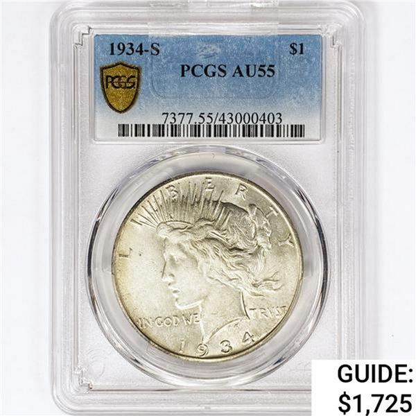 1934-S Silver Peace Dollar PCGS AU558017e - 1934-S Silver Peace Dollar PCGS AU55