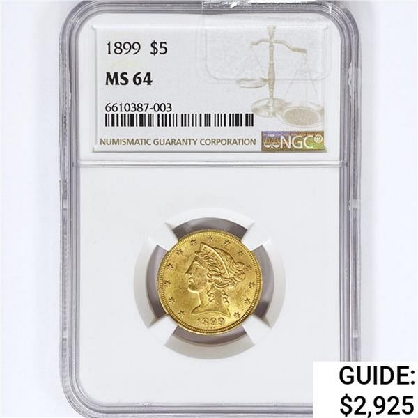 1899 $5 Gold Half Eagle NGC MS648018e - 1899 $5 Gold Half Eagle NGC MS64