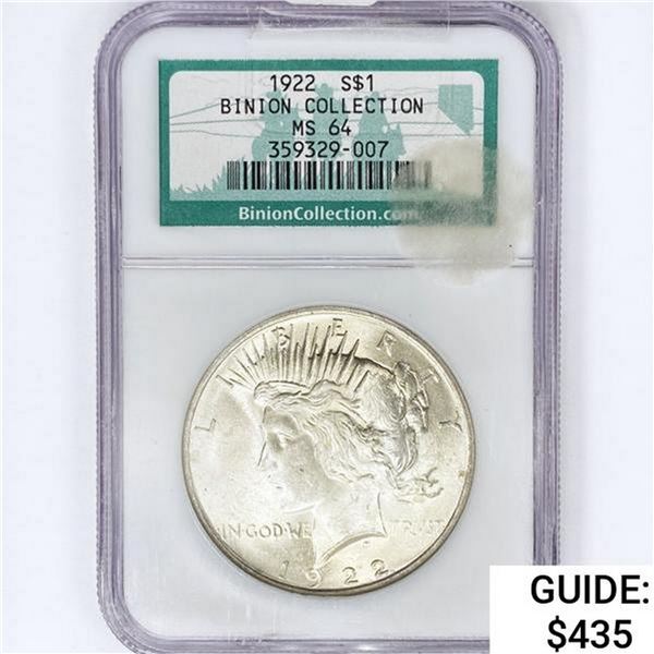 1922 Silver Peace Dollar NGC MS64 Binion Collect.8024e - 1922 Silver Peace Dollar NGC MS64 Binion Collect.
