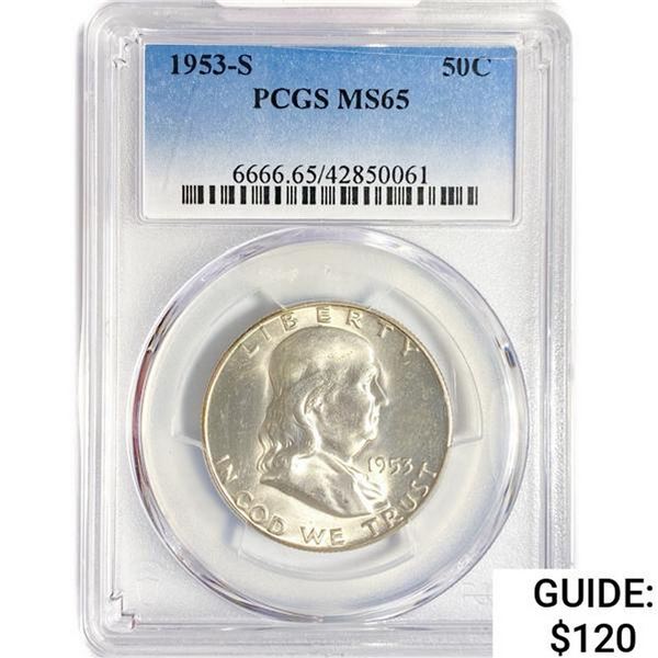 1953-S Franklin Half Dollar PCGS MS658027e - 1953-S Franklin Half Dollar PCGS MS65