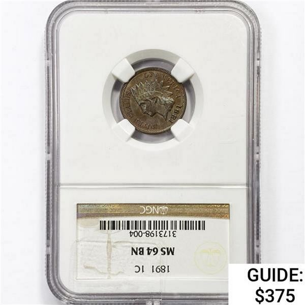 1891 Indian Head Cent NGC MS64 BN8029e - 1891 Indian Head Cent NGC MS64 BN