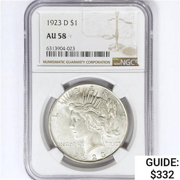 1923-D Silver Peace Dollar NGC AU588321e - 1923-D Silver Peace Dollar NGC AU58