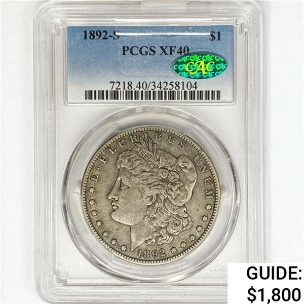 1892-S CAC Morgan Silver Dollar PCGS XF40