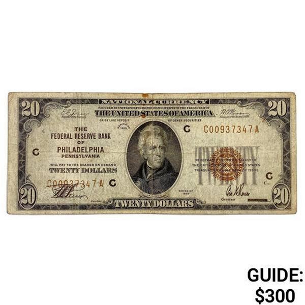 1929 US MinneapolIs Bank, MO $20 Fed Res Note