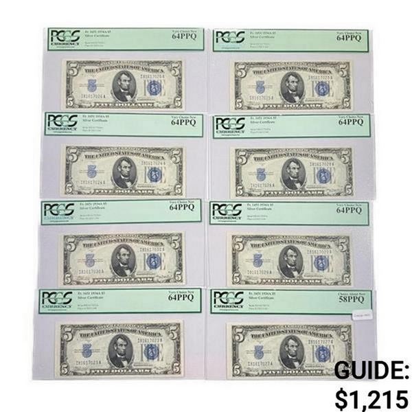 (8) 1934-A $5 Silver Cert. PCGS VChN & ChAN58 &