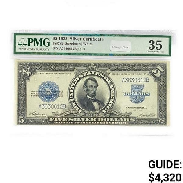 1923 1923 LG $5 Porthole Silver Cert. PMG Ch VF35