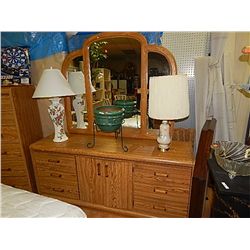 DRESSER - OAK STYLE - 2 DOOR - 6 DRAWER WITH MIRROR