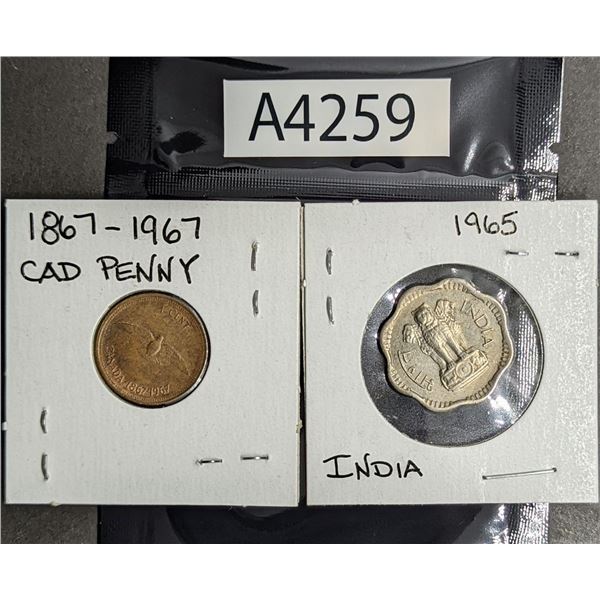 1955 CAD Penny & 1935 US Buffalo Nickel